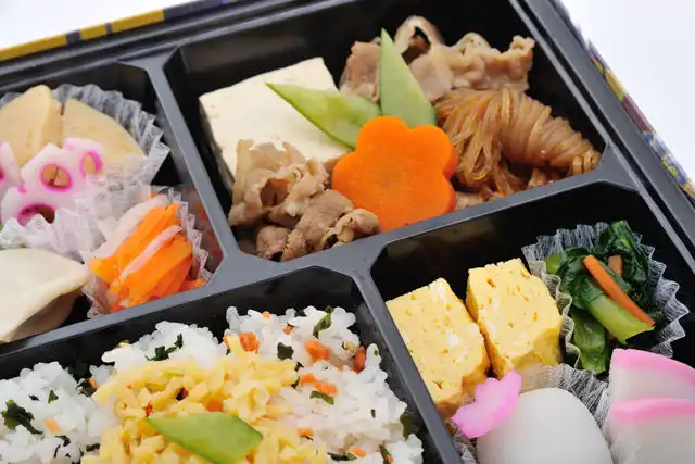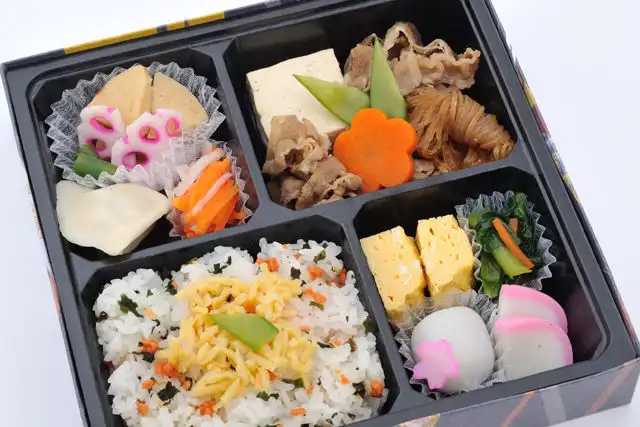 春らしい彩りにこだわった、季節限定商品。春の食材竹の子を使った煮物は、味と食感も楽しんでいただける一品です。手作りにこだわった副菜の中でも一押しが出汁巻き玉子です。ご好評いただいている牛すき煮をメインに、お花がアクセントになった一口大福も付いた春らしいお料理を是非ご堪能ください。