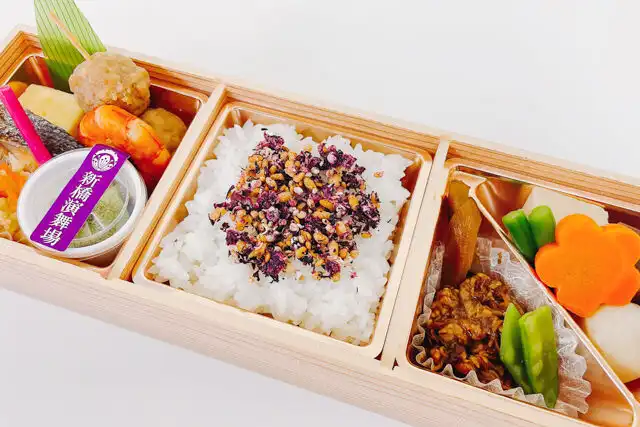 観劇にいらっしゃるお客様は幕間に召し上がる<幕の内弁当>を楽しみにされている方も多く、公演ごとに創られた限定幕の内弁当は多くのお客様を魅了してきました。伝統の出汁が効いた煮物は新橋演舞場の名物でもあります。華やかな折容器「花車」が、劇場の金屏風や舞扇をほうふつとさせる雅やかなお弁当です。劇場の雰囲気を味わえるよう、折り容器「花車」も華やかにデザインされており、おもてなしにも最適な配達弁当です。新橋演舞場を代表する名物の出汁が効いた煮物も入っており、贅沢な時間を演出します。演舞場の幕の内弁当「花車」をぜひお試しください。