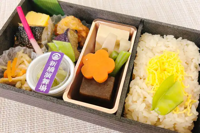 新橋演舞場の観劇にいらっしゃるお客様は幕間に召し上がる<幕の内弁当>を楽しみにされている方も多く、公演ごとの限定幕の内弁当は多くのお客様を魅了してきました。職人により受け継がれた出汁により炊きこまれた茶飯は深い味わいに仕上がっております。劇場の歴史と味を是非お楽しみください。
