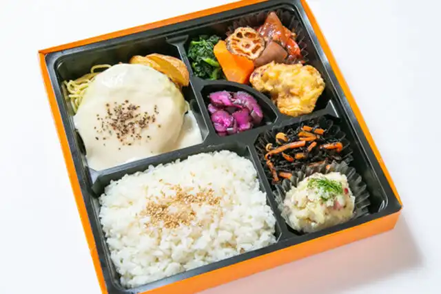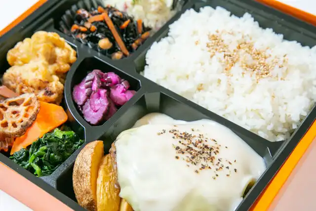 大人気のステーキハンバーグに副菜が色とりどりのスペシャル弁当登場。季節限定のチーズ、クリームソース、ハンバーグのトリプルコラボが絶品です。