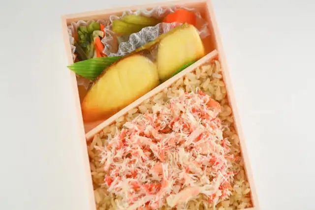 だしが効いた旨味たっぷりのかにめしに、紅ずわい蟹のフレークをふんだんに盛り付けました。味の浜藤自慢の西京焼も入り、小ぶりながら満足感のある一品です。冬の味覚の王様の「蟹」を、存分にお楽しみ下さい。