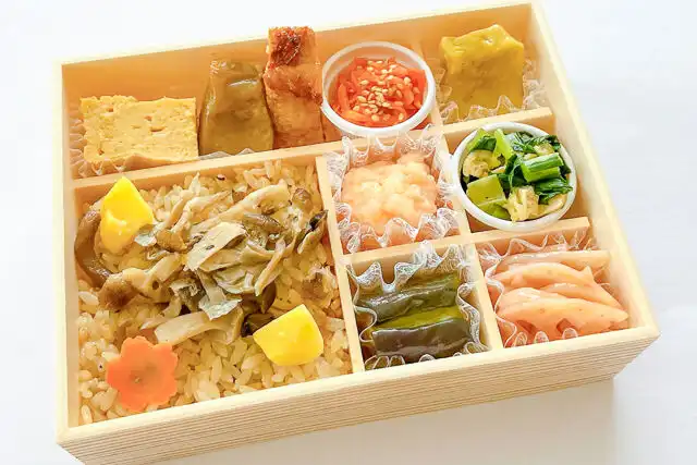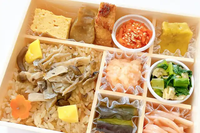 1品1品少しずつ味わえるこだわりの惣菜に焼き物、季節の栗が添えられた炊き込みごはんまで、コンパクトながらも名店「たか木」のこだわりを楽しめるお弁当。「たか木」の出汁は厳選された素材をたっぷり使用し、じっくり時間をかけてひくので一般的なものと比べてはるかに濃厚です。こだわりの「特製海老団子」は、食感を残した海老と玉ねぎの甘みに出汁の旨みが合わさり至福の味わいです。