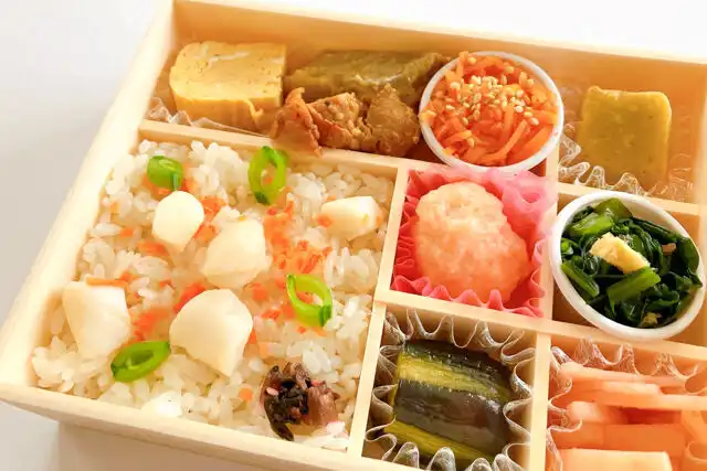 粟麩の艶煮やまぐろの西京焼きなどお馴染みの味をはじめ、全9種のお料理を盛り込んだ特製御膳です。ご飯は貝柱ならではの深い味わいが楽しめる炊き込みごはんに仕上げています。コンパクトながらも名店「たか木」のこだわりを楽しめるお弁当。「たか木」の出汁は厳選された素材をたっぷり使用し、じっくり時間をかけてひくので一般的なものと比べてはるかに濃厚。こだわりの「特製海老団子」は、食感を残した海老と玉ねぎの甘みに出汁の旨みが相まって絶品です。