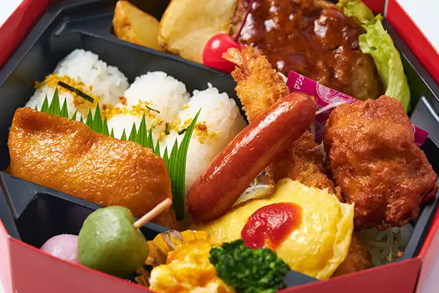 京やのお子様膳を仕出し弁当でご提供いたします。お子様の好きなおかずを八角の折詰に詰めました。使い捨て容器でのお届けです。ご利用シーンに合わせて配達いたします。