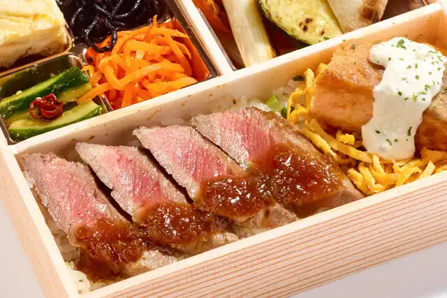 /サーロインステーキ サーモンムニエル弁当
