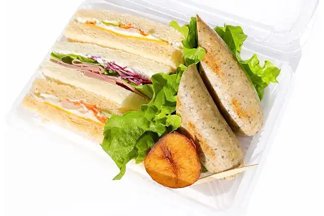 サンドイッチ(ポテトサラダ&チーズ)/サンドイッチ(ハム&レタス&紫キャベツ)/ハーブソーセージ/ポテト、レタス