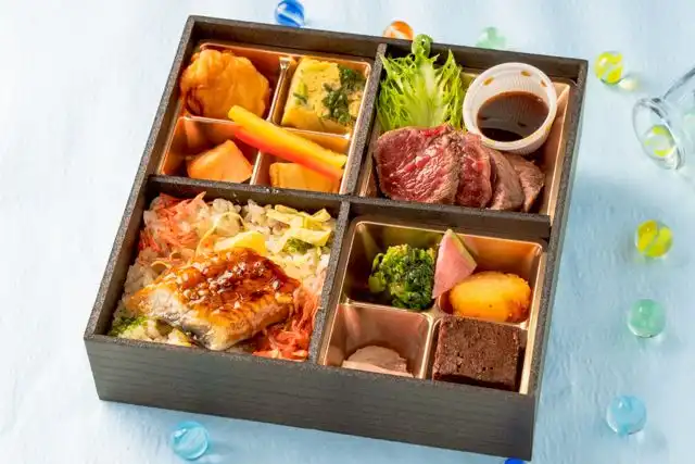 香ばしさが増した熟成ステーキとうなぎご飯が入ったお弁当です。
