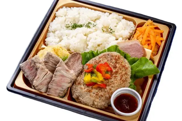 和牛ステーキを通常(35g)より15g増量し、ハンバーグとともに楽しめる贅沢フレンチ弁当。