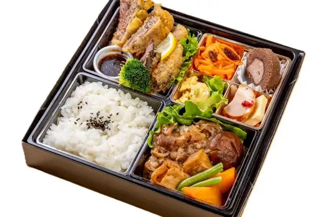 白飯(160g) /和牛すき焼き /和牛かつ増量(70g)/こだわり惣菜3種/デザート/ソース