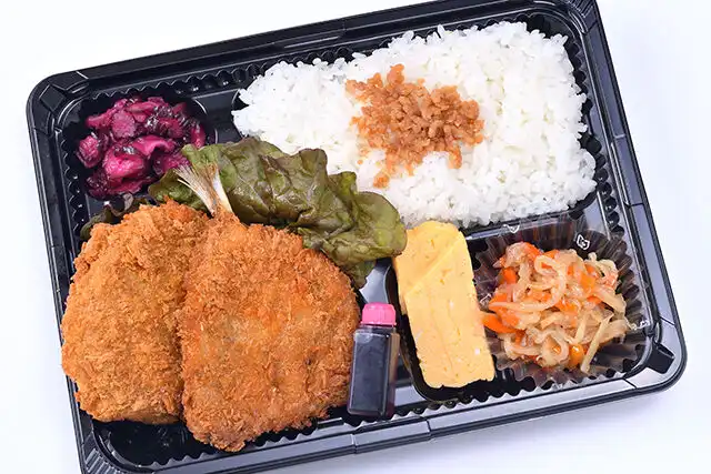 大阪手づくり弁当 はまよしの2種のおかずが楽しめる!コロッケ&アジフライを宅配弁当でご提供いたします。サクサクに揚げたコロッケとアジフライが入ったボリューム満点のお弁当。600円で2種類のおかずが楽しめるコスパ抜群のお弁当に仕上げました。ロケ弁や特別なお集まりなど、ご利用シーンに合わせて配達いたします。