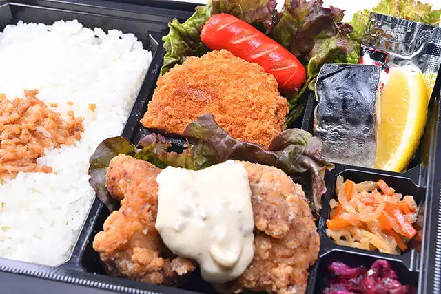 大阪手づくり弁当 はまよしの2種のおかずが楽しめる!チキン南蛮&コロッケを宅配弁当でご提供いたします。タルタルソースで楽しむチキン南蛮とサクサクジューシーなコロッケが特徴です。お手頃な価格で、700円で2種類のおかずが楽しめる大満足のお弁当に仕上げました。ロケ弁や会議など、ご利用シーンに合わせて配達いたします。