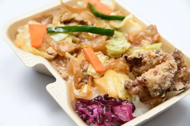 しっかりと味をしみ込ませた自家製の唐揚げと、ご飯の進む野菜炒めの人気のセットです。