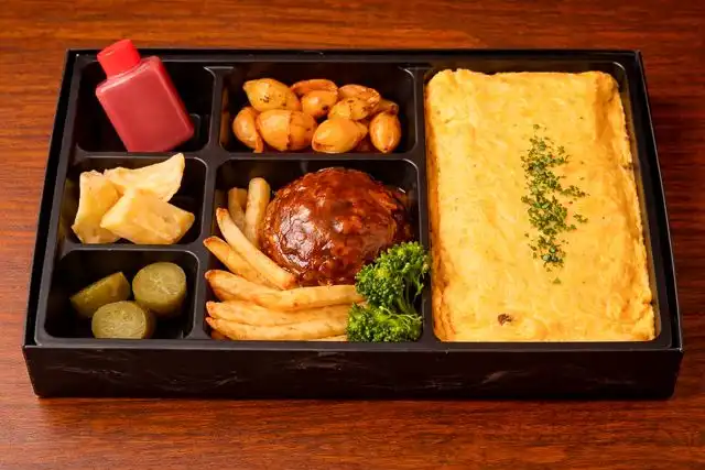 贅沢ビーフオムハンバーグ御膳は、ふわふわのオムライスとジューシーなデミグラスハンバーグが絶妙にマッチ!フライドポテトや彩り野菜も盛りだくさんで、華やかな食卓を演出します。おいしさとボリューム満点で、男女問わず大満足間違いなし!