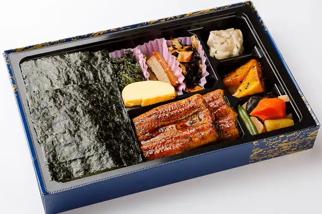 のり弁松原本店がご提供する宅配弁当。おすすめの【有明産海苔御膳】鰻の蒲焼をオフィスやご自宅でお楽しみください。肉厚の鰻の蒲焼を盛り込んだ贅沢な御膳です。バラエティーに富んだ副菜、香り豊かな有明産の海苔と艶やかに炊き上げた新潟産こしいぶきと一緒にお楽しみください。ロケ弁や特別なお集まりなど、ご利用シーンに合わせてデリバリーいたします。