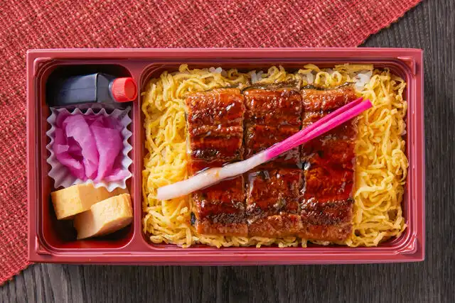 江戸焼鰻 うな公がご提供する宅配弁当。おすすめの特選うな重(竹)をオフィスやご自宅でお楽しみください。自家製ダレにからめた国産のうなぎに錦糸卵を散りばめております。ぜひ、ご堪能ください。ランチミーティングやご家族でのお集まりなど、ご利用シーンに合わせてデリバリーいたします。