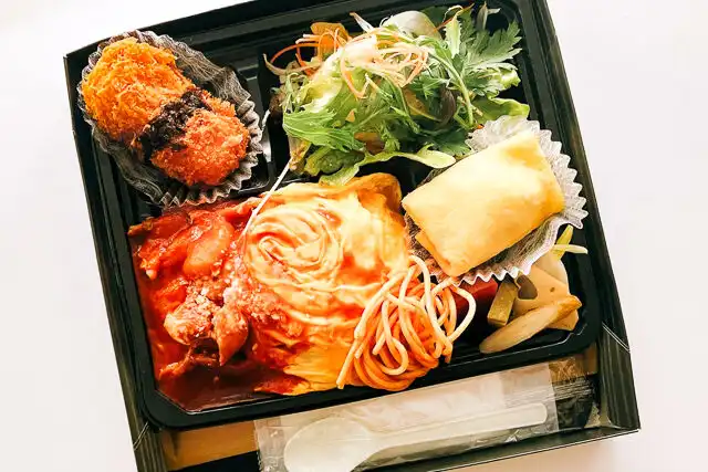これぞ『ranpu』のドレスオムライス弁当です。玉子をドレス風に仕上げて、見た目もおしゃれに仕上げています。しっとりしたオムレツは中のご飯との相性も抜群です。完熟トマトソースの酸味とマイルドな玉子の相性は最高です。