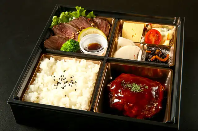 2種類のお肉がぎゅっと詰まったステーキ弁当。