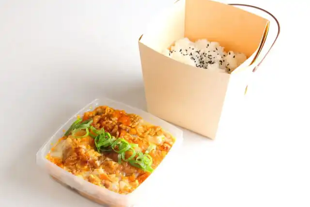 BOXとりたまめしはIRO鶏がおすすめする宅配弁当です。ナチュラルな風合いでデザインも可愛らしい紙箱のランチボックス。香ばしさが食欲をそそる揚げた鶏もも肉にスパイシーな味付けでごはんがすすむ味です。トロトロの卵でとじたおすすめの弁当です。