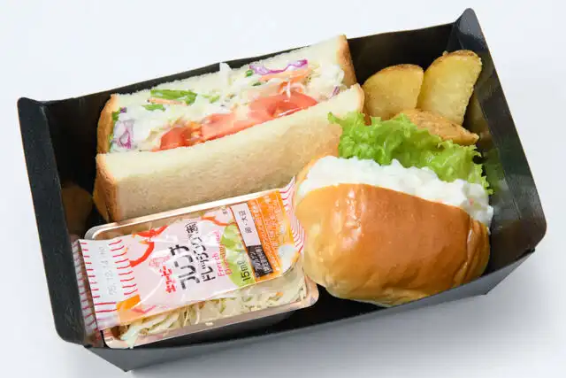 大阪手づくりサンドイッチ ミカサンドの野菜サンド&ポテサラロールが宅配弁当でお楽しみいただけます。野菜サンドとポテサラロールのセットです。ポテトもご一緒にどうぞ。ロケ弁やランチミーティングなど、ご利用シーンに合わせてデリバリーいたします。