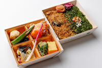 見た目も美しく、おかずの種類も多く、ボリュームがあります。鶏もも肉が柔らかくジューシーで、銀鮭も甘味があり美味しかったです。また、5層のり弁は初めて食べましたが、かつお節や風味の良い海苔、一番上には美味しい味噌まで、見た目も味も大満足でした!男性にとっても、ボリューム感のある昼食で、全員美味しいとの感想でした。また頼みたいと思います。美味しいお弁当をありがとうございます。