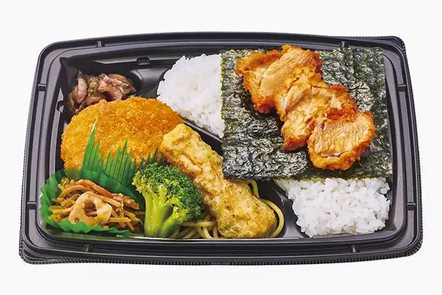 大人気のとりめしにコロッケやちくわの天ぷらが入ったお弁当。