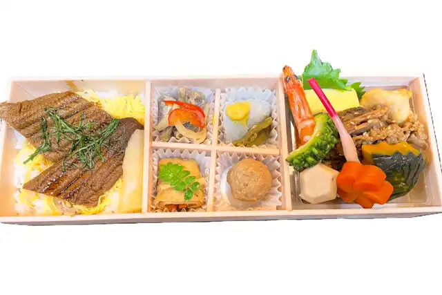 秘伝のたれでふっくらと炊き上げた煮あなご重と、香ばしい牛焼肉を贅沢に盛り込みました。彩り豊かな副菜と共に、心ゆくまでご堪能ください。
