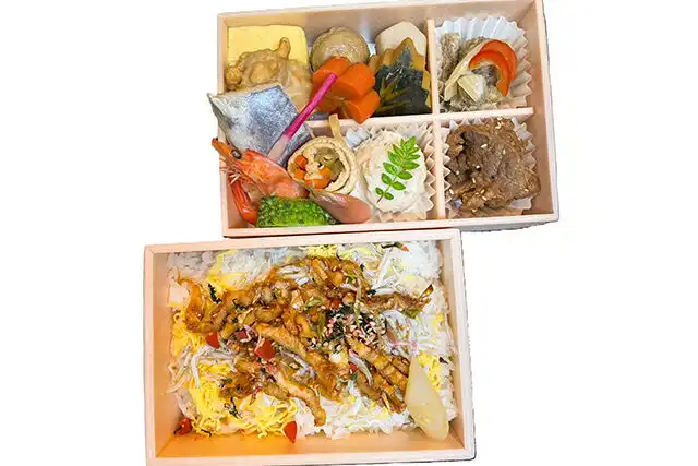 特製のタレでふっくらと煮上げた海鮮穴子ちらしをたっぷりと味わえる二段重です。彩り豊かな和風のおかずを一緒に詰め込みました。職人の技が光る贅沢な味わいを、心ゆくまでご堪能ください。