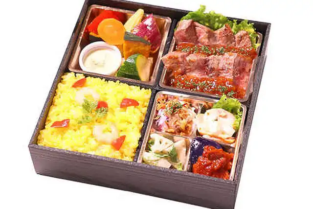 冷めても柔らかい特選ステーキがたっぷり入った、彩り豊かなお弁当です。