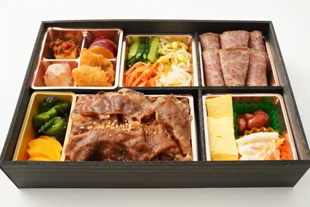 黒毛和牛焼肉重&霜降りローストビーフ弁当ー4種の副菜ー