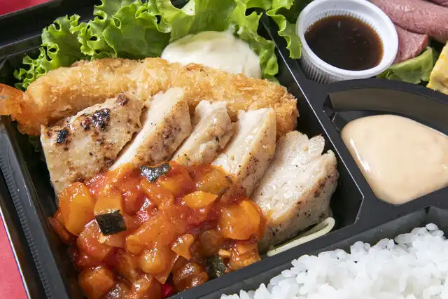 人気の自家製ローストビーフと共に、南仏ラタトゥイユをソースに合わせたローストチキンを盛り込み、更にエビフライを添えた豪華なXmas限定のお弁当です。ひとくちサイズのショコラケーキもイチオシです。クリスマスピックが付いたお弁当になります。