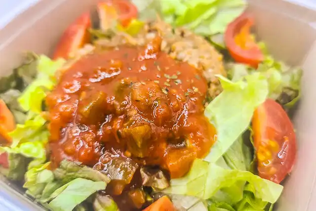 LUNCH FACTORYオリジナル大豆タコミートとサルサソース、そしてチーズが絡み合って絶妙な味わいに仕上がっています。お米としっかり混ぜ合わせながらお召し上がりください!