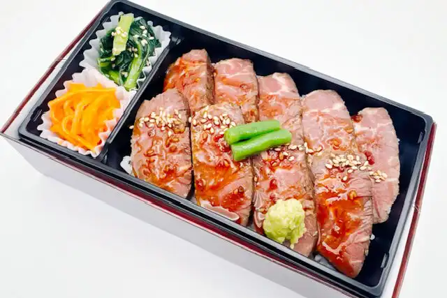 赤身の王様牛ハラミステーキだけを使った贅沢なお重です。牛ハラミ肉を可能な限りレアに近い状態で焼き上げ、ハラミの美しさ・旨味を存分に楽しんで頂けるようにしました。各種会合・大切な仲間との時間に是非ご利用ください。