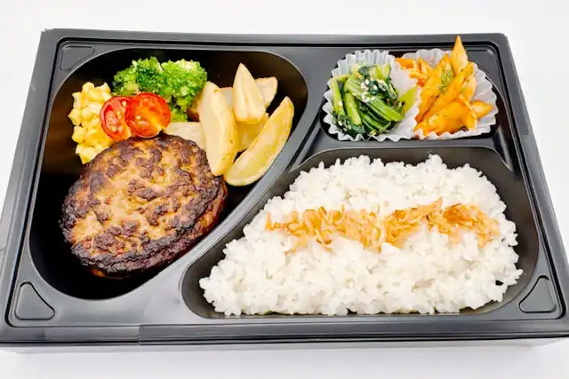 白米150g/ハンバーグ/フレンチフライ/彩り添え野菜/付け合わせ2種