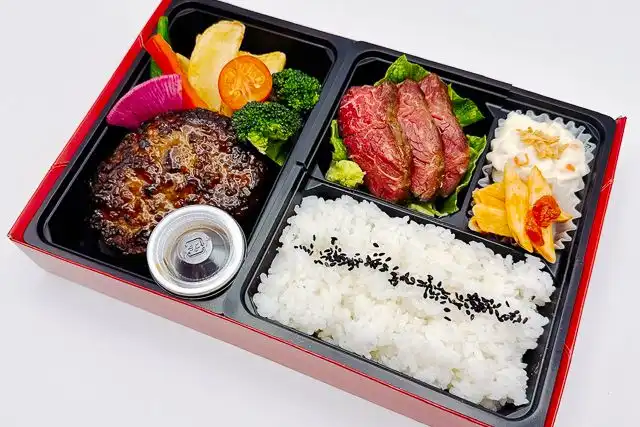 牛ハラミステーキと近江牛100%ハンバーグのお弁当です。