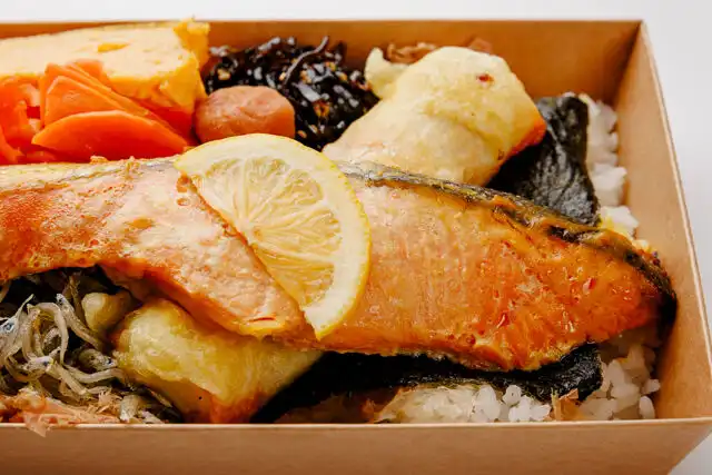 /厚切り鮭の西京焼きと鯛ちくわ海苔弁
