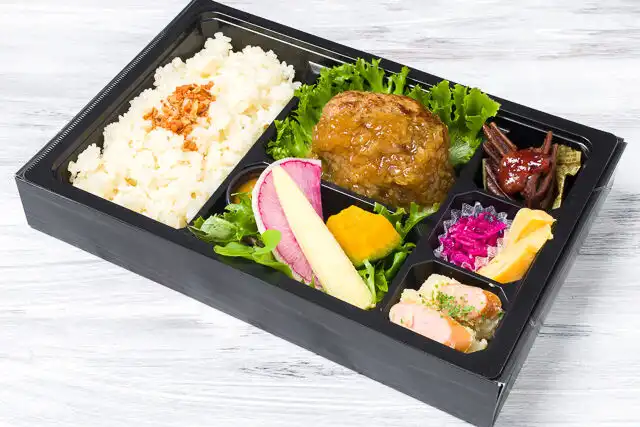 /【熨斗対応可】至極のハンバーグ(特製シャリアピン)と 極上酵素ドレッシング添えの朝採れ野菜サラダ弁当