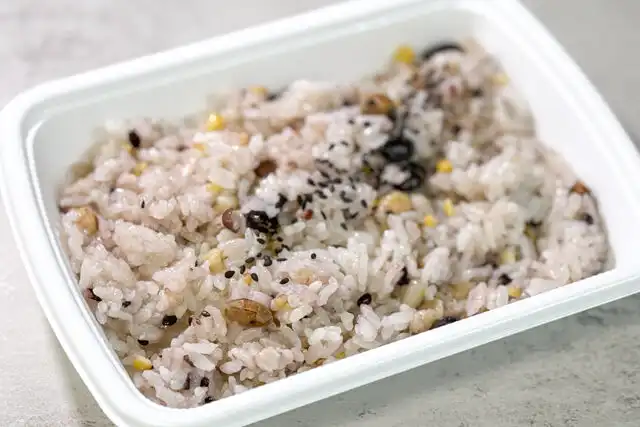 とうもろこし、もち黒米、黒大豆などの十六穀物を含みます。