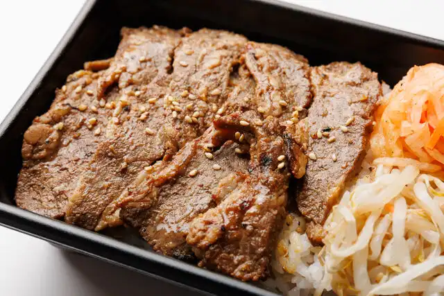 牛ロース/黒米入りご飯/豆もやしナムル/大根ナムル