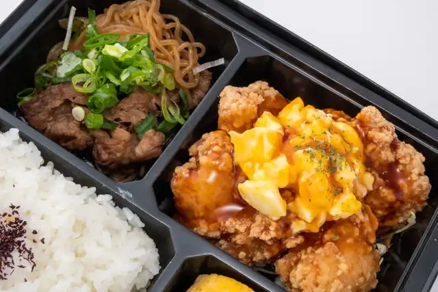 祇園しんじょうの特製チキン南蛮とすき焼き弁当を宅配弁当でご提供いたします。サクサクの衣が香ばしいチキン南蛮とすき焼きの組み合わせは、ご飯がすすむこと間違いなしです。デリバリーいたしますので、会議やご家族でのお集まりなど、ご利用シーンに合わせてご注文いただけます。