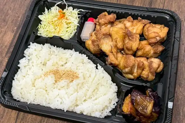 鶏モモ肉を素揚げしたシンプルであっさりとした弁当です!香りの強い花椒塩(かしょうじお)でさっぱりとお召し上がりいただけます。他の弁当と違い、お漬物の代わりに『揚げナスのお浸し』が入っております。イベント、ロケ、会議など幅広い用途でご利用頂けるお弁当です。