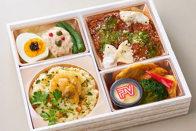 シーフードとボッタルガの風味豊かなリゾピラフ、ジューシーなハンバーグのボロネーゼ煮込み、サクサクのフリットミスト、そしてゆで卵と新鮮な緑の野菜を合わせたトンナートが入っています。ポンテベッキオのエッセンスが詰まったイタリア料理で、特別なひとときをお楽しみください。