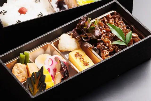 特製だれで頂く焼肉は、冷めても柔らかく美味しくお召し上がりいただけます。ちらしご飯と花形ご飯、彩り豊かな御菜の数々と、目でも舌でもお愉しみいただけるよう仕上げました。おもてなしの場など、大切な場を彩るお弁当としてご活用ください。