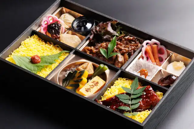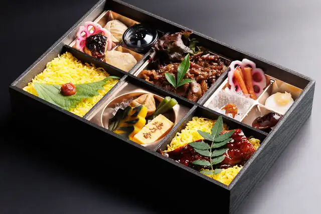 焼肉をメインに、海の幸・山の幸を彩りよく配した御菜の数々を詰め合わせました。ご飯はうなぎちらしと花ちらしの2つの味をお愉しみいただけます。