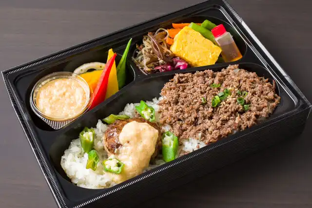 名物!トロロで食べる100%牛タンバーグと飲める黒毛和牛焼肉弁当