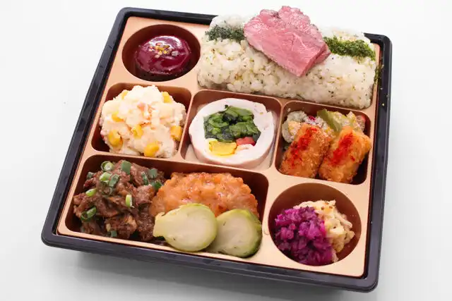 牛肉のラグー / からあげ南蛮 / 芽キャベツサラダ / ポテマヨコーン / 季節野菜のポピーエット / 3種のパプリカサラダ / スパイスハッシュドポテト / 大根マヨネーズ / しば漬けアッシェ / 生チョコとフランボワーズソース / 赤身ステーキ / バジルライス180g
