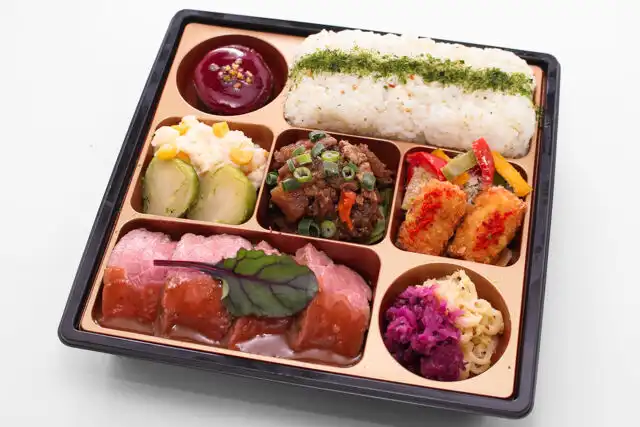 選りすぐり食材を厳選して作るこだわりのお弁当。仕入れの際に厳選した赤身ステーキは程よくサシが入り後味にいやみが無く、上品でとろける食感とコクのある味わいが特徴です。是非一度ご賞味下さい。