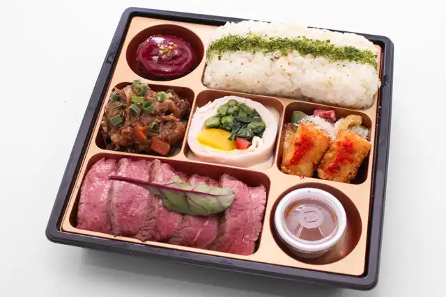 選りすぐり食材を厳選して作るこだわりのお弁当。仕入れの際に厳選した赤身ステーキは程よくサシが入り後味にいやみが無く、上品でとろける食感とコクのある味わいが特徴です。是非一度ご賞味下さい。