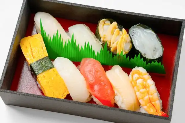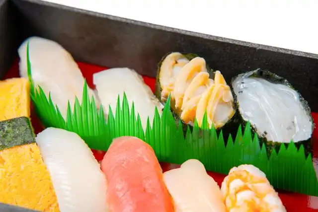 鯛、浅利、白魚、白身、玉子、イカ、まぐろ、つぶ貝、えび、ガリ