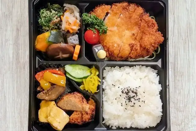 ご飯160g/鶏モモ肉のチキンカツ/つくね、だしまき、蓮根とパプリカのきんぴら/季節の焚き物、なます、ほうれん草のごま和え/漬物きゅうり、たくあん