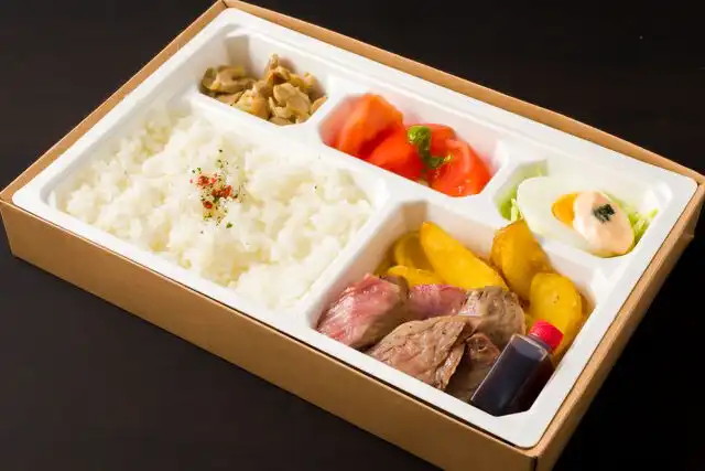 常陸牛ステーキをふんだんに使いステーキの旨味も楽しめるようにお弁当を作成しました。是非ご賞味ください。